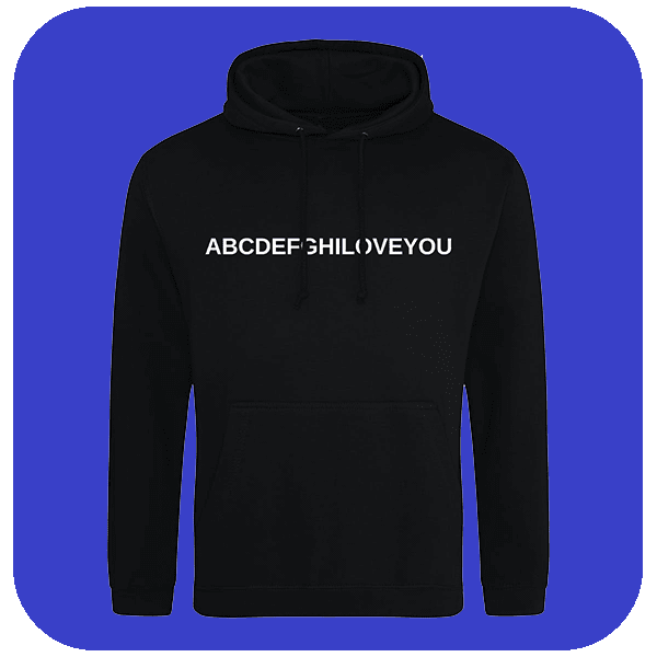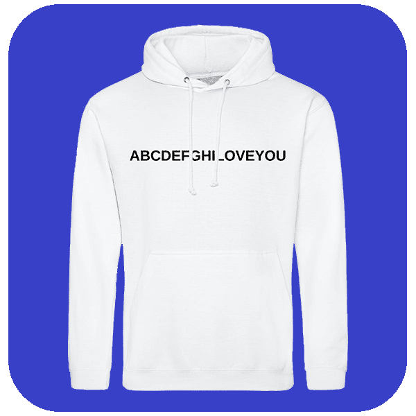 Bluza z nadrukiem dla zakochanych ABCDEFGHILOVEYOU. Zaskocz swoją drugą połówkę z naszą bluzą Alfabet Miłości. Pełna ciepła i afektu, to idealny prezent, który wyraża więcej niż tysiąc słów. Bo przecież miłość to najlepszy projekt