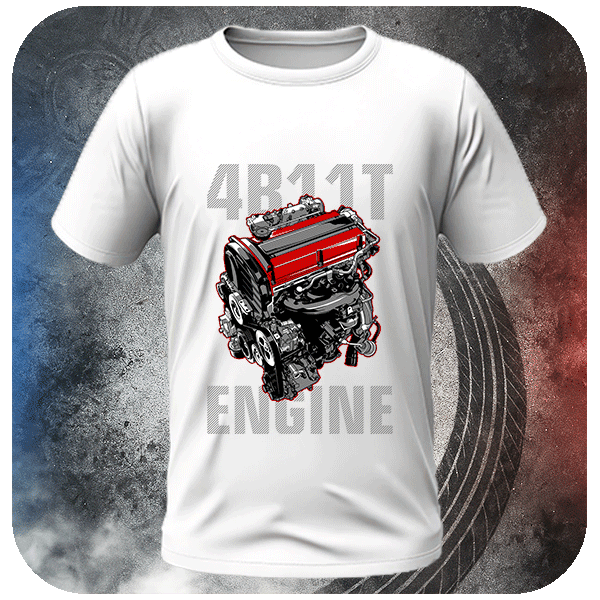 Koszulka Motoryzacyjna 4B11T Mitsubishi Koszulka z silnikiem 4B11T z Mitsubishi Lancer Evolution X. Koszulka JDM dla fanów turbo i tuningu. Koszulka z nadrukiem auta sportowego. Koszulka Evo X Style.
