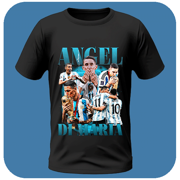 Koszulka Bootleg Angel Di Maria Koszulka z Angelem Di Marią dla kibiców Argentyny i fanów technicznego futbolu. Koszulka Piłkarska Bootleg. Koszulka z nadrukiem. Koszulka Football.