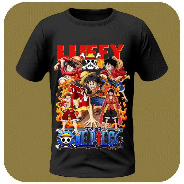 Koszulka anime z Luffym, bohaterem One Piece. Wysokiej jakości nadruk, idealna dla miłośników anime.