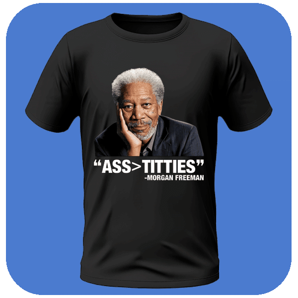 Oryginalna koszulka z wizerunkiem Morgana Freemana i napisem Ass > Titties. Doskonała na prezent dla fanów humoru i popkultury.