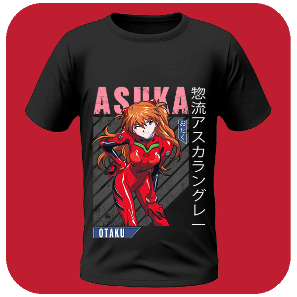 Stylowa koszulka Asuka Langley z Neon Genesis Evangelion. Unikalny bootleg design, idealny dla fanów anime i miłośników stylu otaku. Wybierz oryginalność.