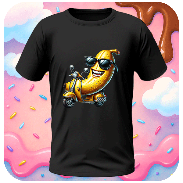 Koszulka Banan Skuter Żółty to śmieszna koszulka z bananem, koszulka z nadrukiem jedzenia, idealny t-shirt dla fanów humoru.