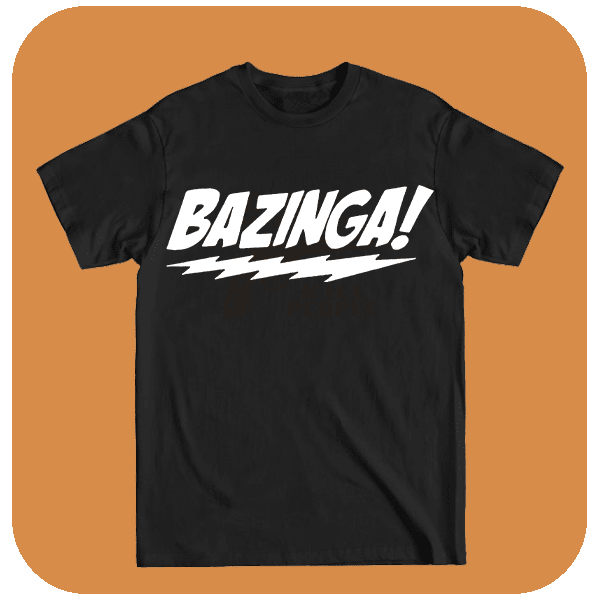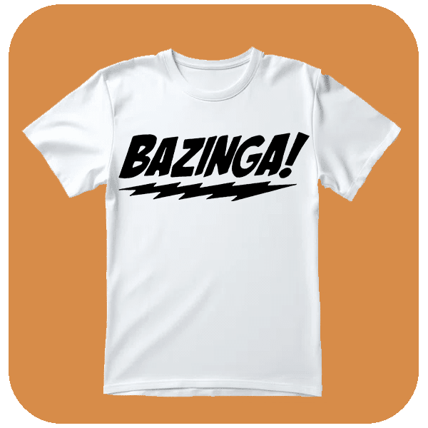 Koszulka z nadrukiem Bazinga! – Zabawna Koszulka. Podkreśl swój geekowski charakter z koszulką, która przyciąga uwagę i wywołuje uśmiech. Must-have dla każdego fana kultowych cytatów.