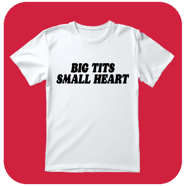 Śmieszna Koszulka Big Tits small heart – Koszulka Humorem. Zaskocz wszystkich koszulką, która mówi więcej niż tysiąc słów. Idealna na wieczór z przyjaciółmi lub jako żartobliwy prezent.