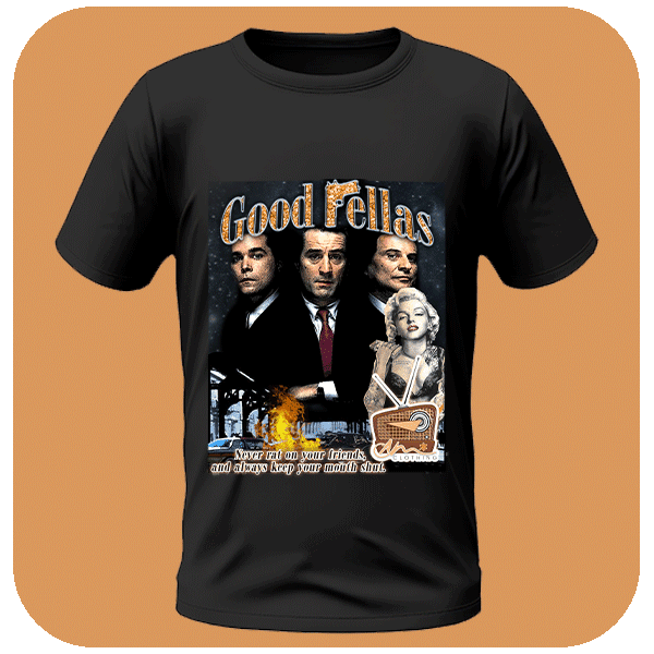 Koszulka Bootleg Goodfellas Wersja. Koszulka z postaciami z filmu Chłopcy z Ferajny. Koszulka Gangsterska Bootleg. Koszulka z nadrukiem.