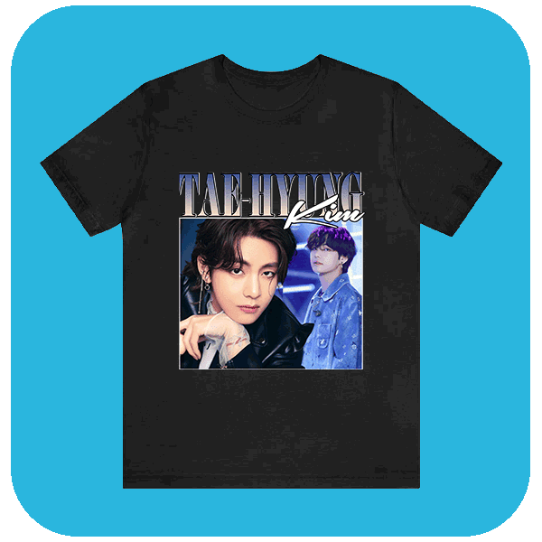 Ta koszulka z nadrukami Kim Taehyung to kwintesencja K-Popowego stylu. Must-have dla każdego fana, idealna na każdą okazję.