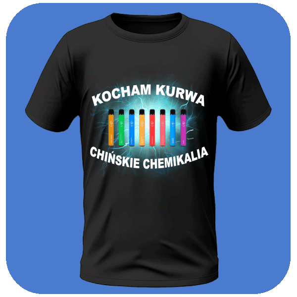 Koszulka z odważnym napisem Kocham Kurwa Chińskie Chemikalia. Doskonała dla osób, które nie boją się prowokacyjnego humoru.