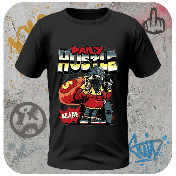 Koszulka Streetwear Daily Hustle Koszulka z miejskim przesłaniem i nadrukiem hustle mode. Koszulka urban style z charakterem. Koszulka oversize dla ludzi z pasją.