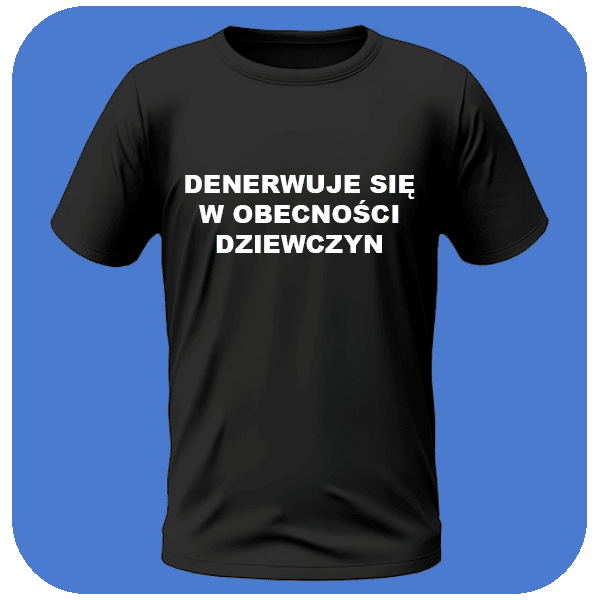 Zabawna koszulka z napisem Denerwuje Się w Obecności Dziewczyn. Świetny wybór dla tych, którzy potrafią śmiać się z siebie i swoich nerwów.