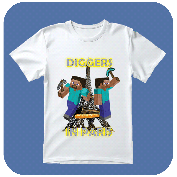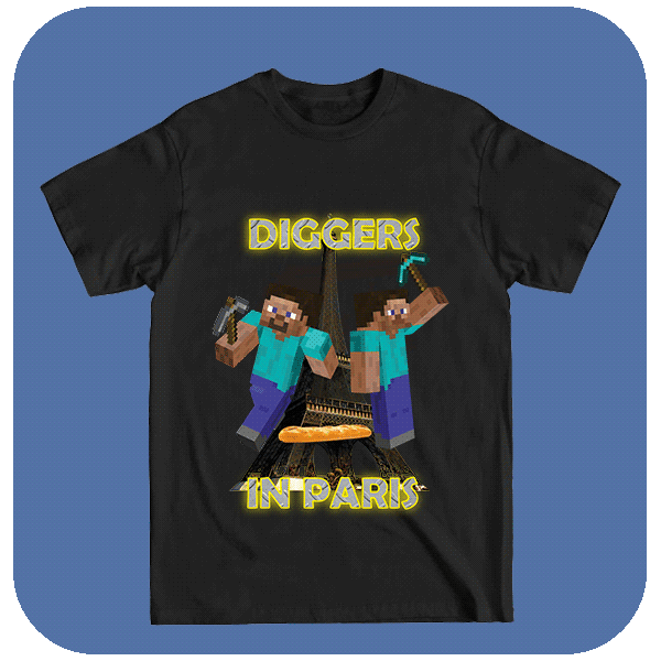 Koszulka maincraft ze śmiesznym nadrukiem Diggers in Paris. Odkryj przygody z koszulką Diggers in Paris, idealną dla fanów gier i odkrywców. Zabierz swój pixelowy styl na ulice Paryża