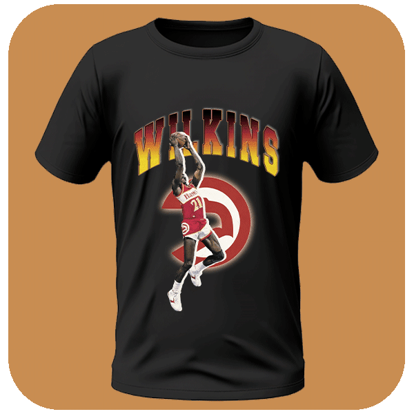 Koszulka Bootleg Dominique Wilkins Koszulka z Dominique’em Wilkinsem dla fanów slam dunków i klasyki NBA. Koszulka Koszykarska Bootleg. Koszulka z nadrukiem. Koszulka Legenda.