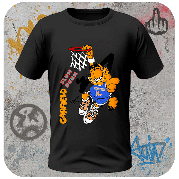 Koszulka Streetwear Garfield NBA Koszulka z Garfieldem w stylu koszykarskim. Koszulka z nadrukiem urban i sportowym klimatem. Koszulka streetwear dla fanów fun & ball.