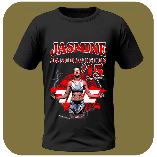 Koszulka Bootleg Jasmine Jasudavicius Koszulka z Jasmine dla fanów UFC i kobiet w MMA. Koszulka MMA Bootleg. Koszulka z nadrukiem. Koszulka UFC.