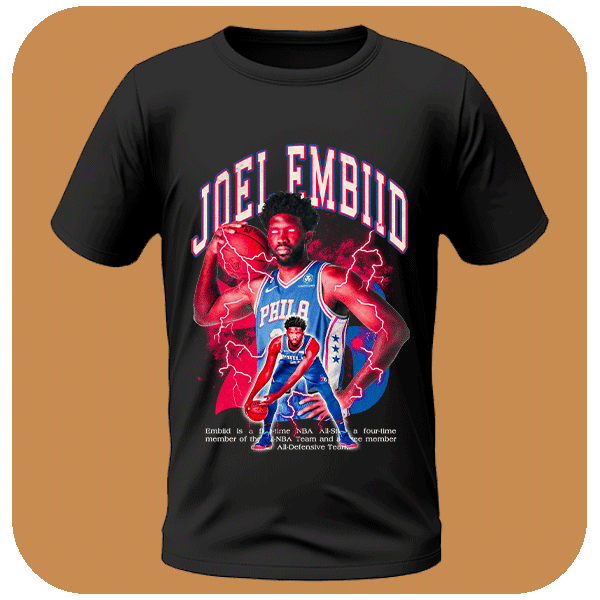 Koszulka Bootleg Joel Embiid Koszulka z Joelem Embiidem dla fanów Philadelphia 76ers i MVP NBA. Koszulka Koszykarska Bootleg. Koszulka z nadrukiem. Koszulka NBA.