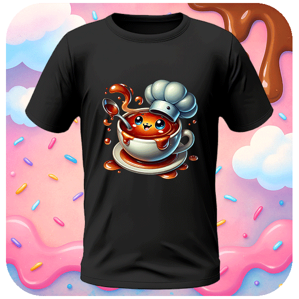 Koszulka Kawa Szef Kuchni to koszulka z kawą z oczami, śmieszna koszulka z kubkiem, t-shirt z nadrukiem napoju dla każdego.