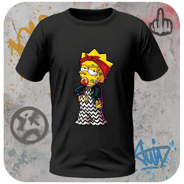 Koszulka Streetwear Lisa Simpson Gangsta Koszulka z Lisą w ulicznej wersji hip-hop. Koszulka z nadrukiem popkulturowym. Koszulka oversize z klimatem The Simpsons.