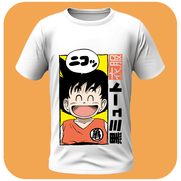 Koszulka z małym Goku, który rozświetli każdy dzień! Idealna na co dzień, lekka i przyjemna w noszeniu, dla fanów najmłodszych przygód Saiyana.