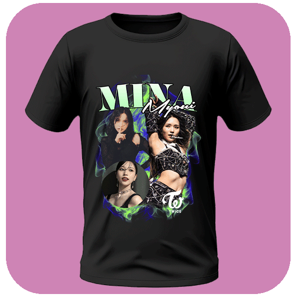 Koszulka Bootleg Mina Myoui. Koszulka z Miną z TWICE, japońską wokalistką znaną z The Feels. Koszulka Kpop Bootleg. Koszulka z nadrukiem. Koszulka TWICE.