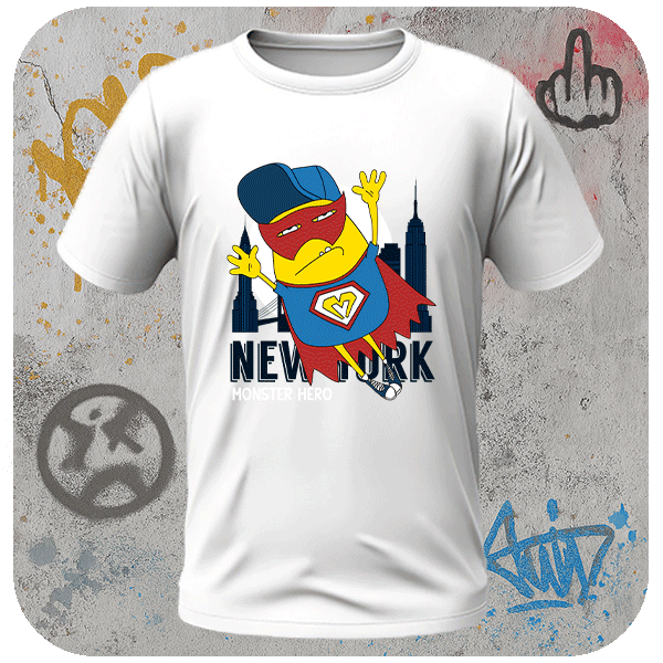 Koszulka Streetwear Monster Hero NY Koszulka z potworem i nowojorskim vibe’em urban style. Koszulka z nadrukiem graffiti. Koszulka z energią superbohatera.