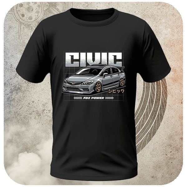 Koszulka Motoryzacyjna Honda Civic Koszulka z grafiką Civic w klimacie street racerów i car meetów Koszulka JDM z nadrukiem Koszulka z samochodem sportowym z Japonii
