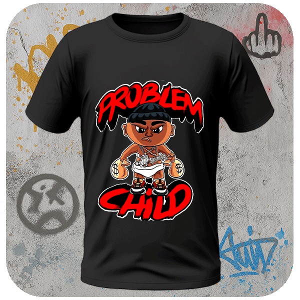 Koszulka Streetwear Problem Child Koszulka z przekazem rebel w stylu urban i pop kultury. Koszulka z nadrukiem streetwear. Koszulka oversize dla twardych charakterów.