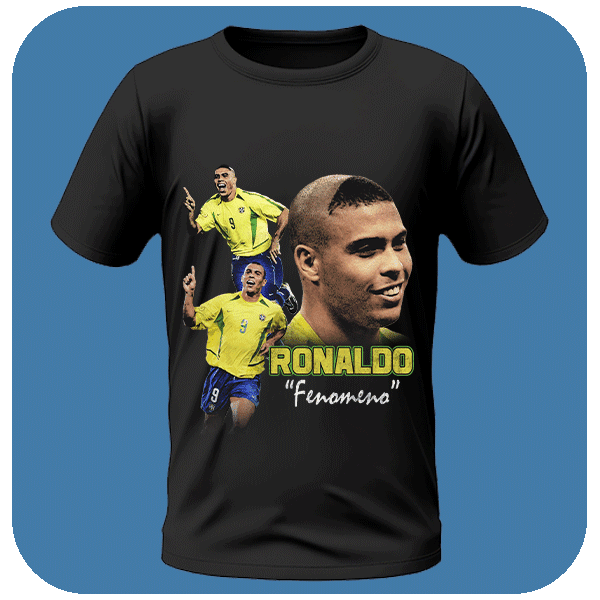 Koszulka Bootleg Ronaldo Brazylijski Koszulka z Ronaldo Nazário dla fanów Brazylijskiego futbolu i legend napastników. Koszulka Piłkarska Bootleg. Koszulka z nadrukiem. Koszulka Napastnik.
