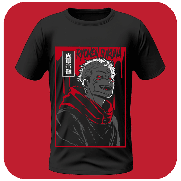 Koszulka z Ryomenem Sukuną z Jujutsu Kaisen. Mroczny i potężny design dla fanów tajemniczej i demonicznej strony świata anime.