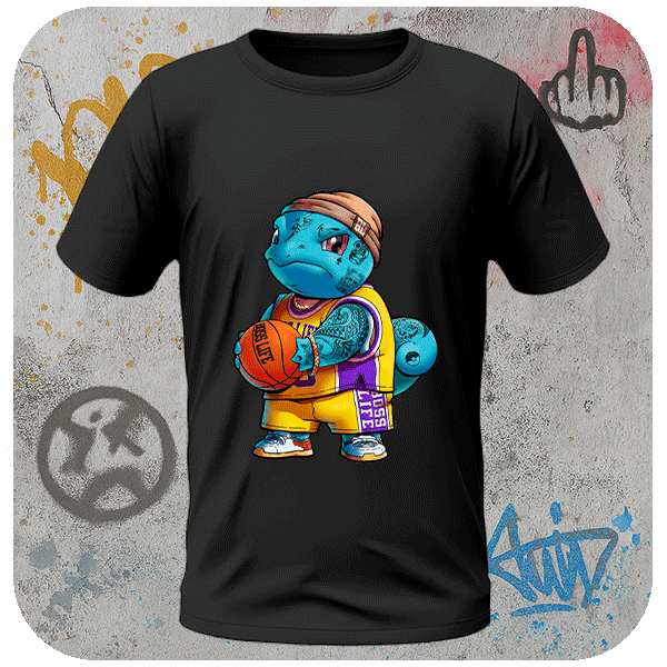 Koszulka Streetwear Squirtle Gangsta Koszulka z pokemonem w ulicznej wersji hip-hop. Koszulka z nadrukiem urban cartoon. Koszulka streetwear dla fanów anime i dripa.