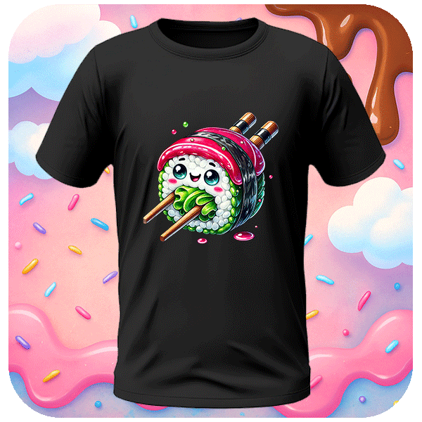 Koszulka Sushi Rolkowe Oczy to tshirt z sushi z oczami i pałeczkami, koszulka z nadrukiem jedzenia, idealna koszulka na prezent.