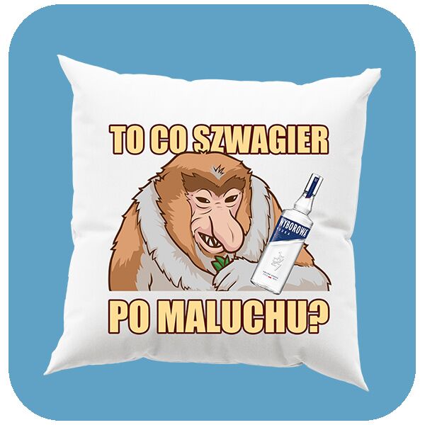 Poduszka To Co Szwagier Po Maluchu. Poduszka z zabawnym napisem To Co Szwagier Po Maluchu rozśmieszy każdego, kto spojrzy. Doskonała na prezent dla bliskich, którzy cenią humor i dobrą zabawę.